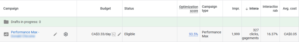 Nous avons remplacé la campagne Search par une Performance Max entièrement pilotée par l’IA de Google… mais calibrée par notre équipe : paramétrage stratégique, ciblage affiné et créations publicitaires sur mesure.
